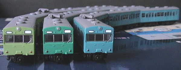 ウグイスは両端クハ、エメラルドとブルーはクモハ付きにしました。
