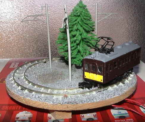 レールの繋ぎ目にリード線を接続し、ポケットラインの2軸動力や