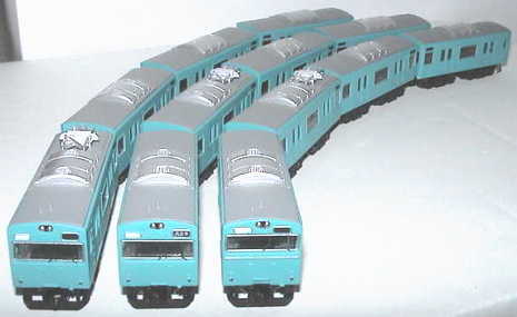 横須賀色の先頭は奇数車・阪和色は偶数車仕様(窓ガラスパーツのトイレの位置の関係)です。