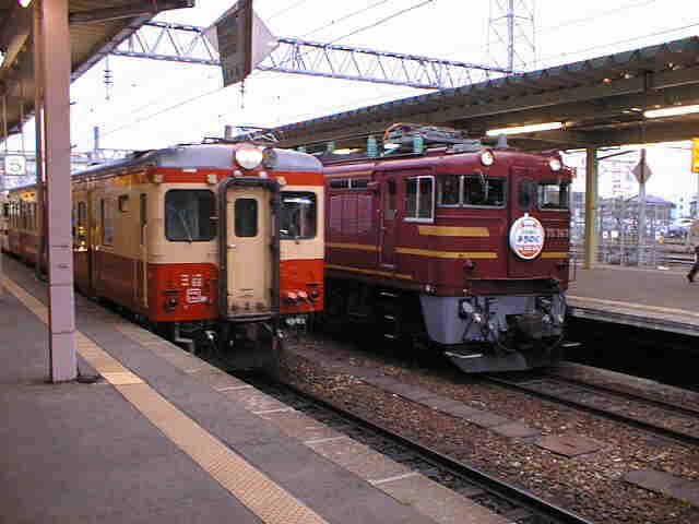 惜別ふれあいみちのく号 一般色キハ52との並び(盛岡駅) (2002年5月21日〜6月6日) |