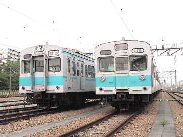 | E231-800番代の投入で余剰となった 103-1200系と301系が 拝島構内に疎開されました。 5月24日撮影 (2003年5月27〜 2003年6月28日) |