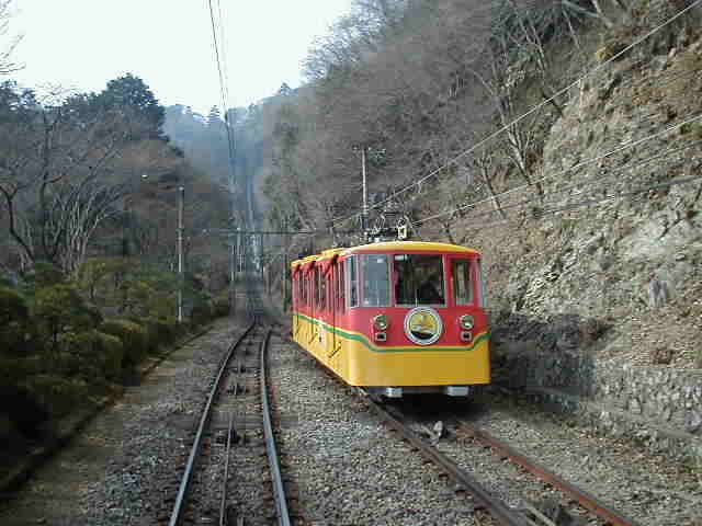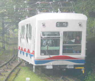 | 京都旅行の途中に乗った 比叡山のケーブルカーです。 パンタグラフが4つ。 (2003年6月28日〜 2003年7月1日) |