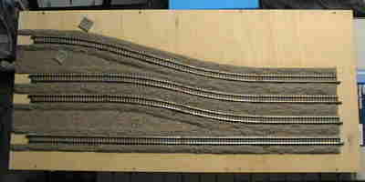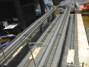 この部分は分岐した後のレール配置を元に戻す部分で、左上には橋脚の台座も打ちつけてあります。