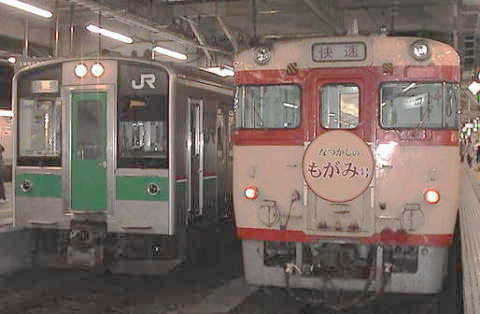 陸羽西・東線の接続駅新庄駅に停車中。 |
