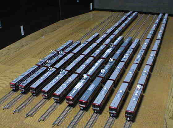 京浜急行の車両を集めてみました。 左から 800型旧塗装3連 800型現塗装3連 1500型付属4連 1500(1700)型基本8連 2100型8連 旧600型4連 2400型2扉4連 ( 8両化で2000型2扉8連化済) 650型4連 600型8連 600型8連 (前帯旧色) 画像は計54両です。 (現在は58両) 今後は 2000型3扉車 1000型 を予定してます。 |