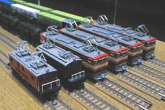 西武鉄道の機関車です。 左から E61 E44 E851×4両です。 E851の後ろはタキ1900型 (三菱、合計12両)と コキ10000型「レオコンテナ」 合計10両(実在しません)です。 (2001年5月12日製作) |