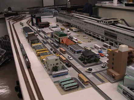 臨港線はほとんど使用しませんでした。 駅裏に展開したジオタウン。THE BUS、塗変バスを配置完了。この時はまだ普通の状態でしたが・・・。内側に線路を敷設中、