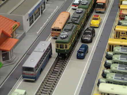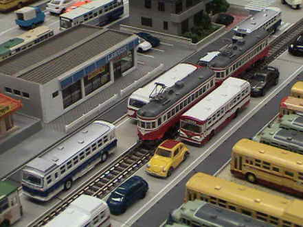 バスも旧型を並べてみました。東急世田谷線300型「せたまる」です。