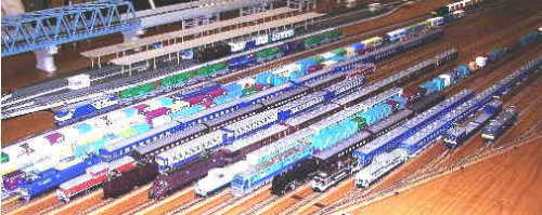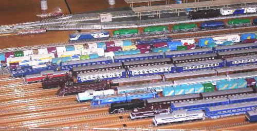 | 車庫と本線に集結した 機関車列車 (特○氏提供) |