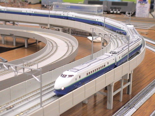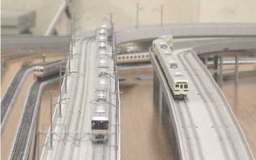 TOMIXの高架線路は ○島氏の担当。 8の字型に線路が 配置されています。 その交差部です。 |
