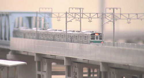 高架線を走る203系0番。 取手付近をイメージ。 |